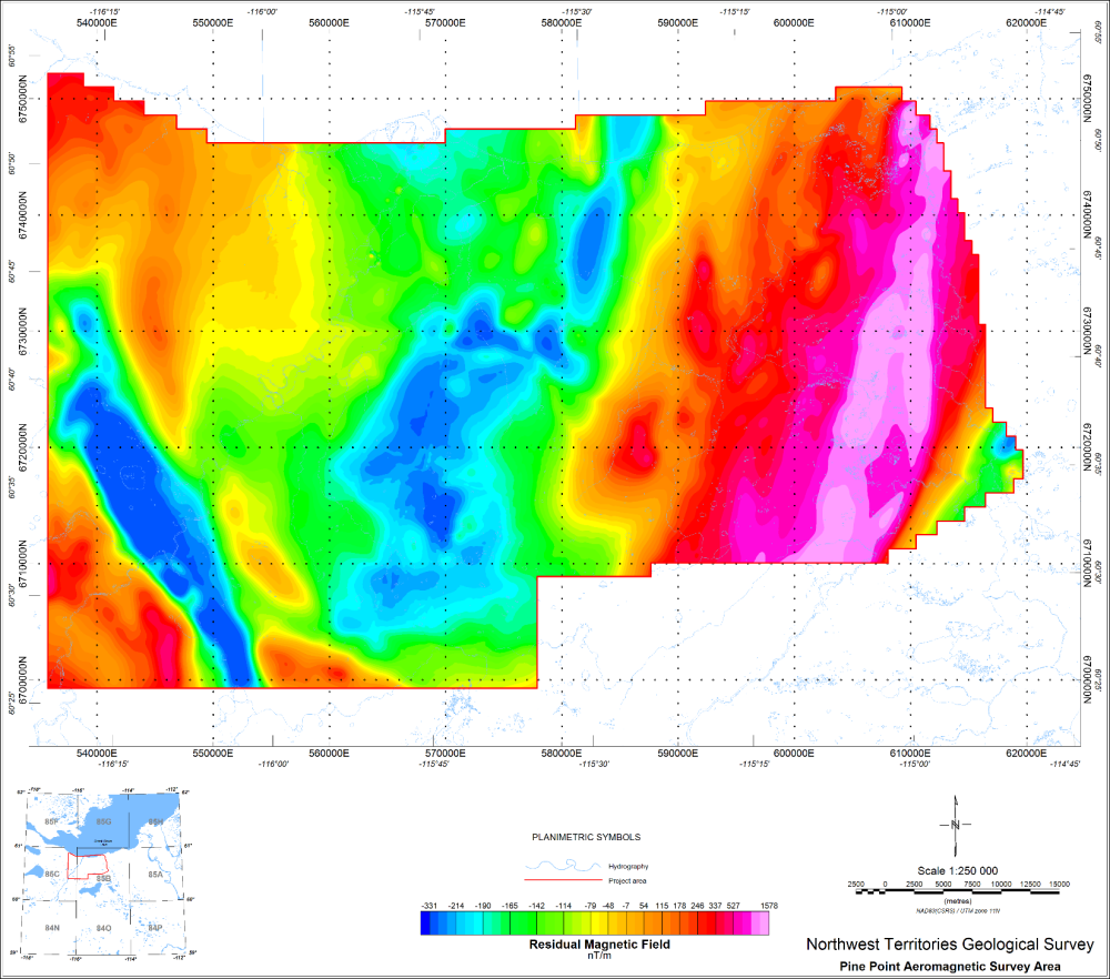 Mirza, A.M., and Elliott, B., 2025. Aeromagnetic survey of the Pine Point area, Northwest Territories, parts of NTS 085B and 085C, EON Geosciences Inc.; Northwest Territories Geological Survey, NWT Open Report 2025-003. https://doi.org/10.46887/2025-003